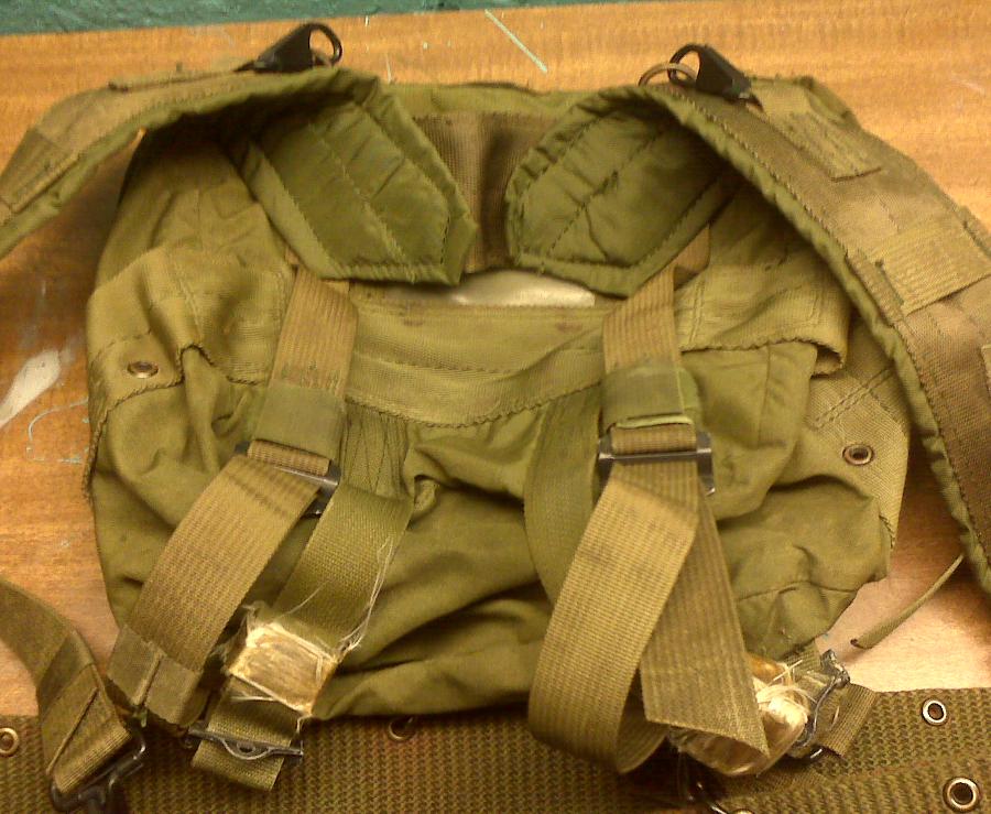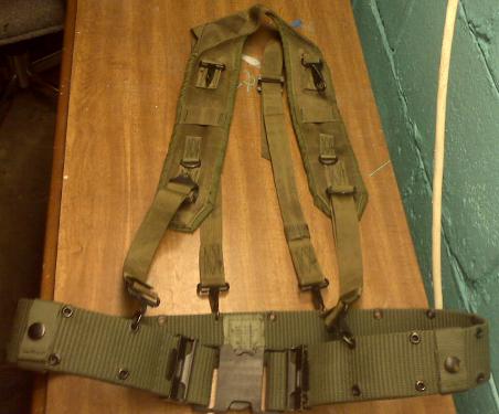 These will somewhat work with butt packs missing the velcro loops but the butt pack will sway quite a bit. The M1956 MLCE suspenders had to ill thought up seperate strap adapters for the sleeping roll and butt pack. But both are a pain the rear to use and only work with the M1956 suspenders. The nickname for the sleeping roll carrier might hint as well. Spaghetti strap as the whole contraption looks like a wad of spagetti!