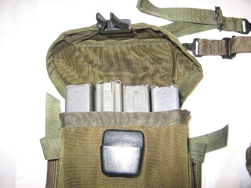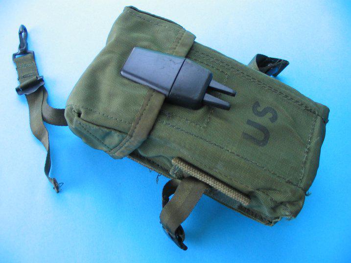 Adoption of the 30 round M16 mag forced the change to the mag pouch. This one is semi scarce but can be found. It's a collectible really now. Pass on it for that reason