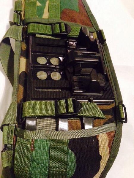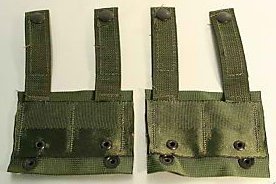 One of the three pouches lifted straight off the IIFS vest with added MOLLE loops. They didn't think this one out though. It was found that three double mag pouches did the job MUCH better than the original two double and two single pouches did. Three double pouches take up 75% of the MOLLE real estate and do the same job as the 2 and 2 setup. It's really weird since they issued a bandolier with three double pouches as well. This was dropped after the initial contract order.