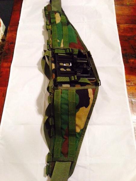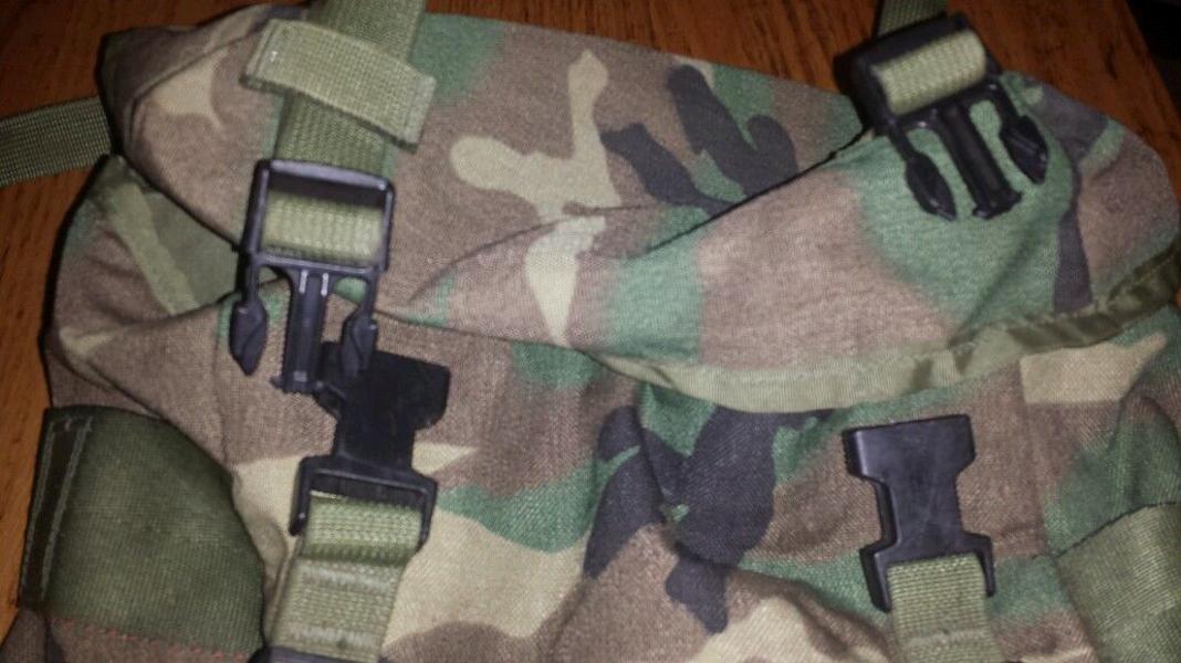 I am only going to cover the original 1997 issued Molle system here. It is in this configuration it is rarely seen. This is for several reasons. In 1998 the Interceptor vest was issued. This had the attachment webbing on it allready for the MOLLE pouch, so mostly the pouches were just added to that. Another reason was low budgets of the military during this era. Moreover, Molle II was issued in very late 2000. Many of the pre 2001 MOLLE NSNs were revised and issued in MOLLE II. Lastly, in late 2001, the MOLLE II system came out in the Desert coffee stain camo. What I want here to do is I want to describe here the ORIGINAL MOLLE system, in woodland camo, as it was rarely seen.