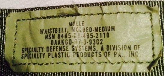 This is really the same item as the IIFS/ALICE buttpack 8465-00-935-6825. Only it has a new NSN. The IIFS version was often found intermixed. The MOLLE labeled one makes me laugh. It is label "PACK, BUTT". Butt as a nomeclature term turned out to be very frowned upon. The redesigned MOLLE II version was renamed "PACK, WAIST" with the same NSN as this one.