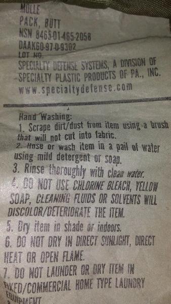 Also... the Butt Pack is actually nomenclatured that! "BUTT, PACK" It was quickly changed to "PACK, WAIST" in later releases.