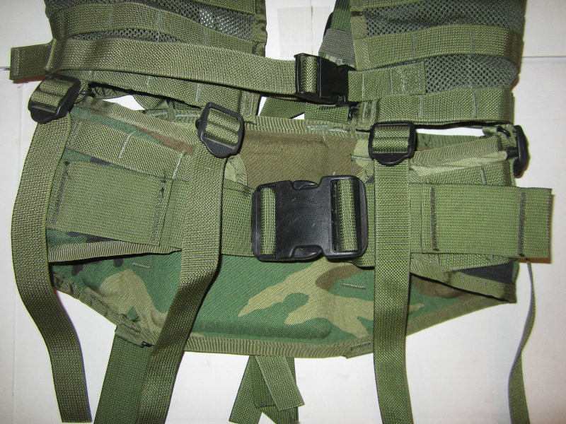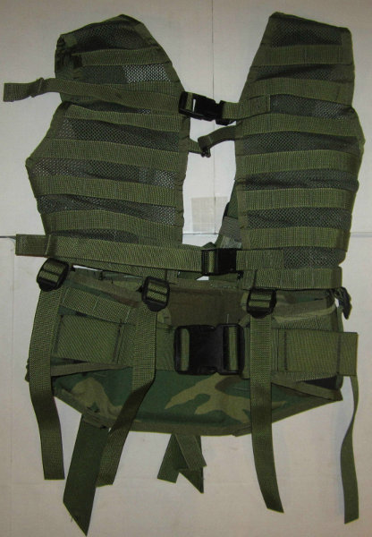 In this form the Vest and Belt were seperate. The vest was designed to be common to all setups. Unlike MOLLE II, the belt was a seperatable item. There were a couple of different belts. One, made in three sizes, was a molded belt made to work with the rucksack. The other was a utility belt with no rucksack capabillity. The various pouches, some of which directly of the type on the IIFS vest, were to be used in various setups. Indeed the various setups were made pre bagged with an overall NSN for that set. The rucksack was integrated into the system and made less seperate. The molded belt had a socket on the back the rucksack was to insert into. This proved less then sucessfull as the male socket part on the rucksack would often miss the socket and injure the back of the wearer.
